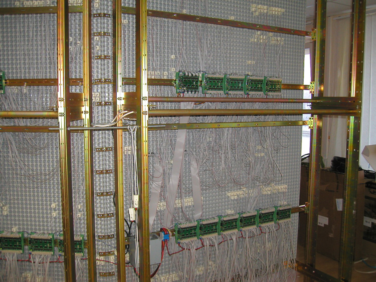 Питание мнемощита осуществляется напряжением переменного тока 220В. На каждой секции диспетчерского мнемощита установлены розетки, к которым подведен питающий кабель. К розеткам подключают блоки питания. К каждому БП можно подключить от одного до нескольких модулей управления.